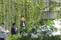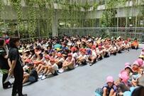 市庁舎の非常階段をのぼり、6階の中庭に集まりました。