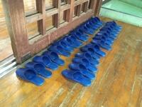 体育館入り口にある靴箱のペンキを塗り直しました。