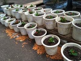 花いっぱいの気持ちのよい学校の環境づくりのため、全校児童による一人一鉢運動を始めました。