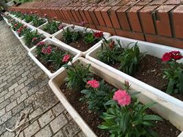 1年生は、赤、白、ピンクのベゴニアを植えています。