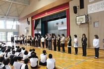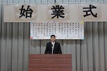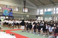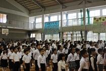 今回の始業式は、式の間ずっと起立したまま行いました。