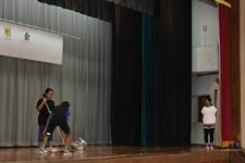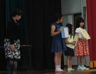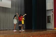 美化委員からのクイズの出題に、ジェスチャーで応える全児童です。