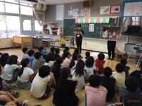 9名の学生さんが各学年に分かれて、大型絵本を使っての読み聞かせを行いました。