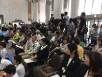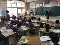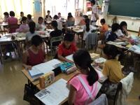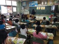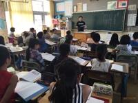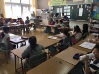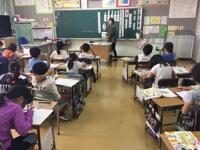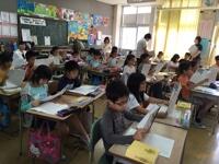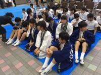 少し緊張しながら、県知事や都知事が来るのを待つ6年生です。