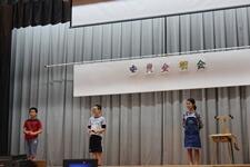 曲目は、「三線の花」「時をこえ」「笑顔のまんま」の三曲です。5・6年生が力を合わせ、今年は創作エイサーに挑戦しました。リズミカルに勇壮に仕上げました。