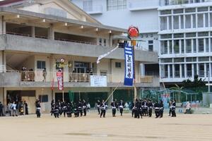開式の前に、泉崎旗頭保存会と本校旗頭クラブが旗頭の演舞を行いました。