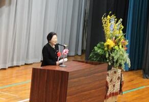 受賞者を代表して、20代校長の新川純子氏からごあいさつをいただきました。