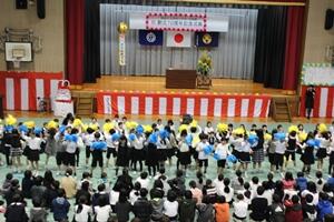 式典に先立って、5年生と6年生によるエイサーの演舞です。