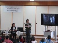 中学校で勉強する各教科の特色や、上山中の一日の様子などについて、写真を見せながら話してくれました。