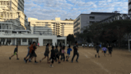 下校時に県庁側道路に飛び出したり、車に隠れたりして遊ぶ児童がいるようです。