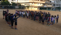 走り終わって呼吸を整えたら、みんなでそろって「今日も一日がんばるぞ おー!」。