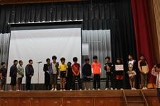 歴代校長、歴代PTA会長、学校三師、クラブ活動や部活動の指導謝、読み聞かせボランティア、美化環境ボランティアの方々に対する功労賞が贈られました。