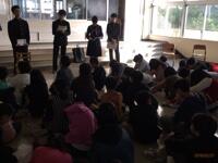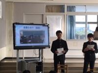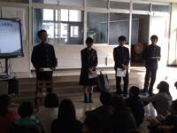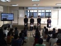 中学校で勉強する各教科の特色や、上山中の一日の様子などについて、写真を見せながら話してくれました。