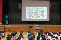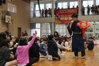 1年生の児童はあきやま氏の表情豊かな語り口にひきこまれて、終始ニコニコ顔でした。