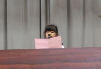 1年生、3年生、5年生の代表が1年間をふり返る発表をしました。