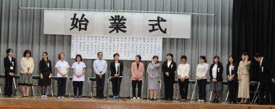 始業式に先立って、新しい職員を紹介する新任式を行いました。