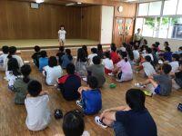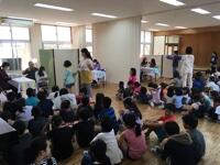 7時50分から8時10分までの間、生活委員会と担当学年の児童がたすきをつけて、明るいあいさつをしています。