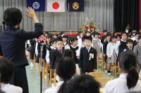 この日はあいにくの雨でしたが、親子で登校する1年生にやさしく声をかけていました。