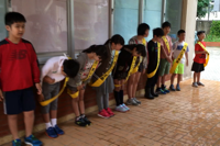 学校ではこのような行動をしないで安全に歩くよう指導しました。