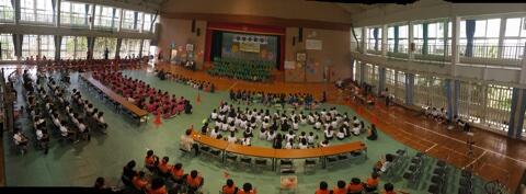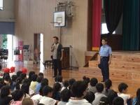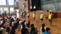 交番長さんをお迎えして、交通少年団の引き継ぎ式を行いました。