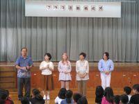 生活委員会と飼育委員会の発表を朝会で行いました。