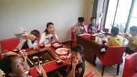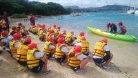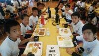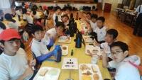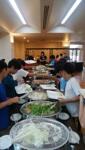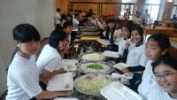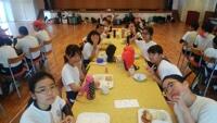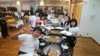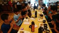 全員元気に朝食バイキング!午前3時間の海洋体験にむけて、たくさん食べています。