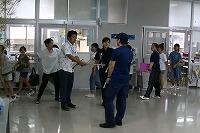 那覇警察署の生活安全課の方々をお招きして、不審者侵入時の対応に関する研修を行いました。