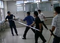 さすまたはななめにしてたすきをかけるように押さえつけると、相手にとられにくくなります。