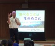 高学年の講演では、嫌いな野菜もよく噛んで食べると味が変わってだんだんおいしくなるということや、映画にもなった「花ちゃんのみそしる」を通しての食事を自分で作ることの大切さ、そして全国各地で取り組まれている「弁当の日」による子供達の様子について、時には熱く、時にはユーモラスに伝えていただきました。