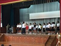 お話朝会では、NHK全国学校音楽コンクール沖縄県大会に出場したみなさんが合唱を披露しました。