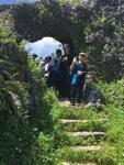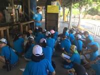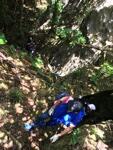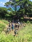 玉城青少年の家のコースは、穏やかな山道から急な坂道、鍾乳洞の中や岩の斜面などを、ロープを伝いながら進んでいきます。