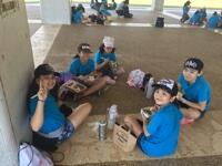キャンプファイヤーの集いを終えた5年生、おやつを食べたあと、はみがき、班会をしてテントの中で眠りにつきました。
