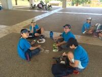 グループでは、カレー係、ライス係、火の係に分かれています。
