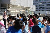 第1次避難の後、3m以下の津波警報が発令されたという想定で、第2次避難場所である本校校舎の屋上へと避難を行います。