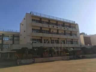 柱部分がこげ茶色になり、ツートンカラーのシックな校舎になりました。