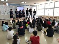 本校の卒業生でもある上山中学の3年生が中学校生活について6年生に講話を行いました。