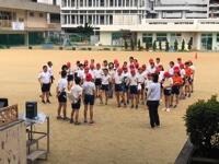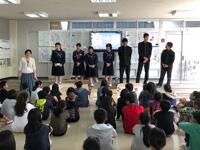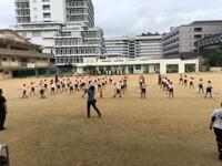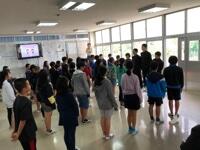 昼休み、学年ごとに集めて開南っ子を楽しませている体育委員会です。