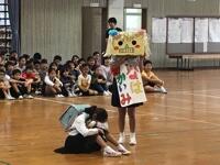 児童会役員から1年生へ、学校が楽しくなる魔法の言葉「オアシス」を教えてくれました。