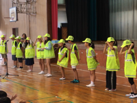 毎週月曜の朝、交通安全の呼びかけを行う交通少年団の引き継ぎ式を全校朝会で行いました。