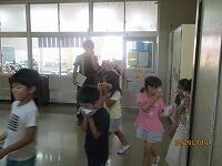 火元の近くの6年生がおちついて避難を開始しました。