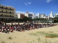 運動場に全児童とこども園児童が揃ったのは、放送開始から3分20秒後でした。