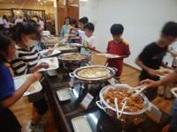 最後のお昼ご飯。焼き肉バイキングです。モリモリ食べています。