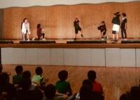 読書月間にちなんで、図書委員会がプロジェクターを使った読み聞かせを朝会で行いました。