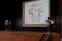 全校朝会で、保健委員会がゲーム依存症についての話をしました。