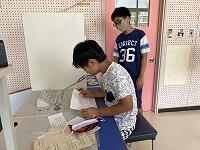 7月21日(火)3・4校時に3年生教室で、『那覇市・開南地域の昔の様子』と『琉球の歴史』について講師をお招きした講話がありました。