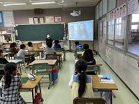 3年生では、総合的な学習の時間に「開南のたから発見!」という開南地域のたからを調べて紹介しようという取り組みを行っており、子どもたちは、真剣に講師の話を聞いていました。