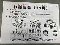 今日の全体朝会は、校長先生による「お話朝会」でした。
