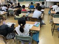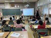 子どもたちは、各学級でプリントを見ながら真剣にお話を聞いていました。