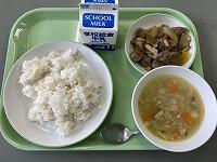 この素敵な給食の献立は、「『沖縄県畜産公社』より沖縄県産和牛の無償提供事業」で9月は『牛丼』、10月は『肉じゃが』、そして今日の『サイコロステーキ』の合計3回でした。