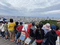 首里城の焼け跡を観て復興を願った後は、『西のアザナ』から開南小学校を探しました。